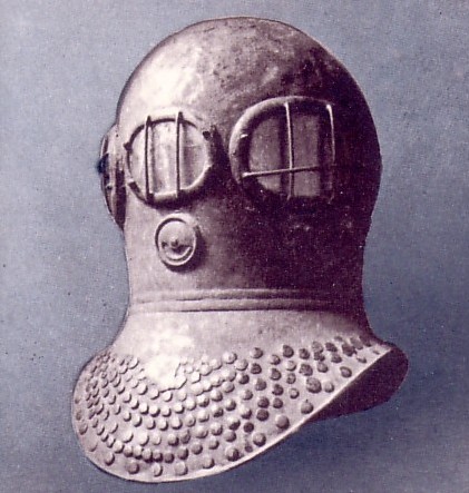En 1819, y tras decenas de inventos y pruebas, Augustus Siebe construyó un casco rígido, unido a un chaleco de cuero, al que se le suministraba aire desde la superficie mediante una bomba. El aire excedente y los gases viciados salian por la parte inferior del chaleco, a la altura de la cintura. El invento de Siebe era más fiable que todos los anteriores y dotado de una bomba de suficiente potencia, podía ser usado a diferentes profundidades durante mucho más tiempo y con una mayor comodidad. |