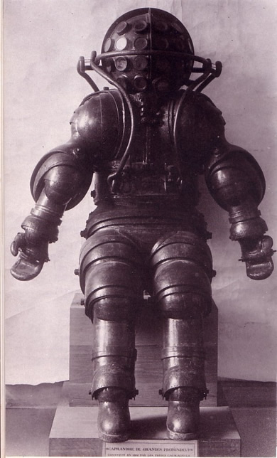 En 1913, los alemanes Neufeld y Kuhnke patentan un traje de buzo rígido, con cojinetes y articulaciones esféricas, combinados para facilitar al buzo los movimientos. Este nuevo invento comenzó a fabricarse a partir de 1920. |
