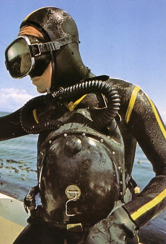 Al tiempo, Emile Gagnan y Jacques Yves Cousteau trabajaban ya en una escafandra autónoma que proporcionaba aire a la demanda, en función de las necesidades de aire del buceador, a la presión requerida y a la profundidad correspondiente. La escafandra autónoma, es esencialmente un aparato respiratorio de circuito abierto, en el cual el anhídrido carbónico se difunde en el agua cuando el buceador expira junto a una parte del aire respirado, sacrificio necesario por causa de una mayor seguridad y sencillez. |