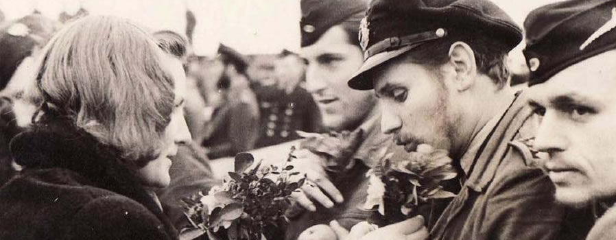 El sumergible mismo se encuentra ileso cuando regresa a la base; sólo la torreta ha sido duramente castigada: sus daños serán rápidamente reparados. Mucho más importante es lo que el Comandante informa al Jefe de Flotilla: ¡cuatro banderines cuelgan del periscopio!. Han hundido dos vapores en su primer viaje, a pesar de la fuerte oposición, y dos barcos que han torpedeado y no han podido observar su hundimiento porque fueron forzados a sumergirse. Las caras de los hombres brillan de nuevo. Estos son los jóvenes reclutas del Arma Submarina Alemana. |