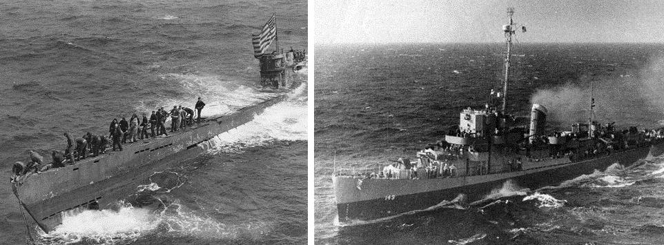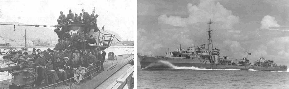 ![]() A la izquierda la dotación del U-559. A la derecha el HMS Petard -G65-. |