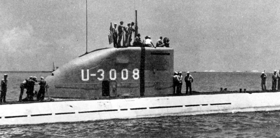 21. Aproximadamente por la misma época, la Royal Navy aceptaría que dos de los 12 uboote del tipo XXI, amarrados en Lisahally esperando la decisión acerca de su destino final, fueran entregados a la US. Navy. Ningún tipo XXI había sido rendido a los Estados Unidos y la US. Navy estaba muy interesada en tener acceso a la tecnología alemana lo antes posible, como evidencia un mensaje de Cominch dirigido al ComNavEu y fechado el 7 de junio de 1945 que incluía lo siguiente: