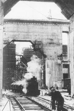 Una característica que lo diferenciaba de los otros búnkeres era que los soportes del techo no eran vigas de acero, sino de hormigón. Nunca llegó a terminarse totalmente, de hecho, la parte de detrás estaba acabada hacia el final de marzo de 1945, cuando un gran bombardeo lo arruinó casi por completo. El búnker no recibió apenas daños, pero toda la maquinaria, grúas, bombas de achique, etc. fue destruido y ya no se pudo hacer nada para ponerlo en funcionamiento. |
