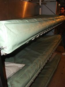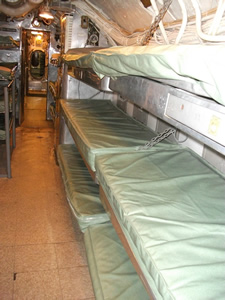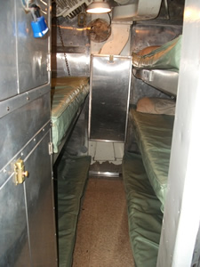 Lo que menos me gustó, por parecerme muy incómodo, fue el compartimento de los camarotes de la tripulación. Poco espacio entre literas (en altura) y muchos juntos sin intimidad……para la guerra no hay comodidades!!. Eso si, los camarotes de los oficiales, más distancia y con intimidad. |