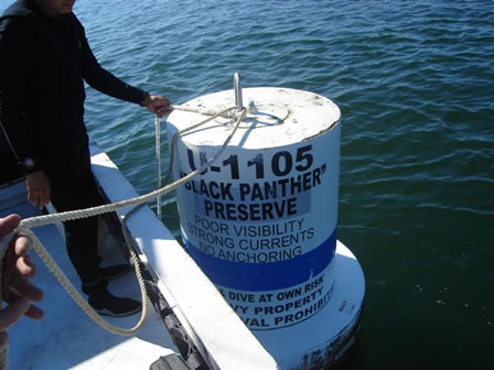 La pantera negra se encuentra aproximadamente a una milla al oeste de Piney Point, en el río Potomac (Maryland -Estados Unidos-). Las coordenadas son 38º08’10” Norte y 76º33’10” Oeste. Una boya de color azul y blanco señala su posición de Abril a Diciembre, siendo retirada el resto del año. En la boya hay unas instrucciones que alertan de la mala visibilidad, las fuertes corrientes y de otros peligros. Para más información consulte la Web: www.maritimehistory.org |