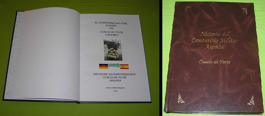 Primeras páginas y portada del libro “El Cementerio Militar Alemán de Cuacos de Yuste”. |