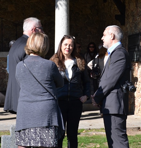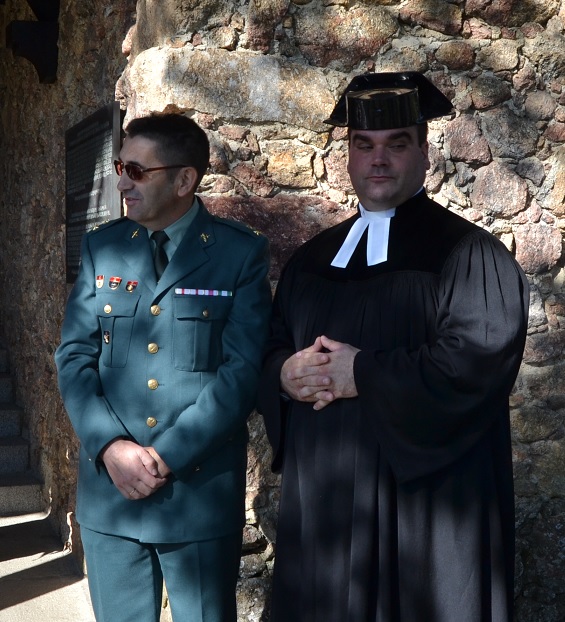 De derecha a izda. El Embajador Excmo. Sr. Peter Tempel, el alcalde de Cuacos Sr. José María Hernández, el Agregado de Defensa Coronel Bernd Albers, y los oficiantes Simon Döbrich y Stephanie Schmidt-Egger.