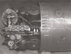 El segundo método fue el motor eléctrico G7e. Su ventaja principal era que no dejaba un rastro de burbujas como el G7a. La batería que alimentaba al motor de corriente continua, medía 2.8 metros y pesaba 711Kg. En ambos sistemas de propulsión (G7a y G7e), el motor movía un eje en el que iban montadas dos hélices contrarrotantes. |