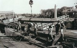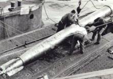 Los torpedos son largos, muy pesados y estában cubiertos de grasa, todos estos factores los hacen poco manejables en el interior de un uboot. Los torpedos eran cargados en el sumergible a través de la escotilla de carga de torpedos de proa o de popa, usando un sistema de poleas. Una vez dentro del uboot, el torpedo debía colocarse en su sitio, ya sea dentro del tubo lanzatorpedos, en unos soportes o debajo de las tablas del suelo. |