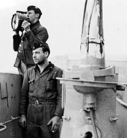 ![]() En la imagen podemos apreciar la utilización de la lámpara de señales. En primer plano (a la derecha) podemos ver el soporte y la brújula |