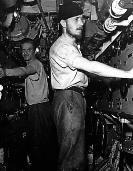A la derecha, los operarios de los motores eléctricos en su puesto. |
