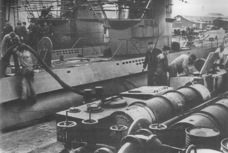 Los tanques se llenan por gravedad o por medio de una bomba en tierra. En casos excepcionales, la bomba auxiliar de aceite lubricante se puede utilizar para el llenado de los tanques (bombeo de fuel oil desde otro barco o sumergible al sumergible en el mar). |