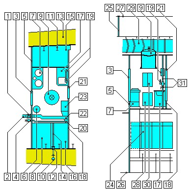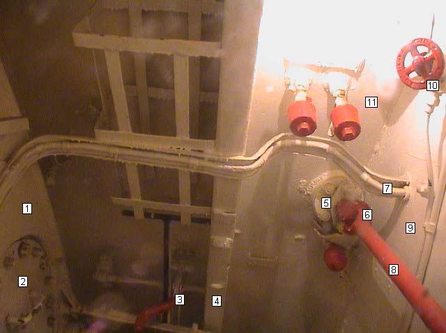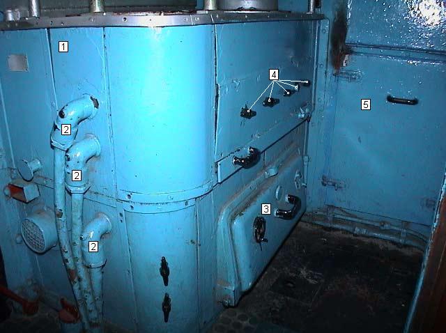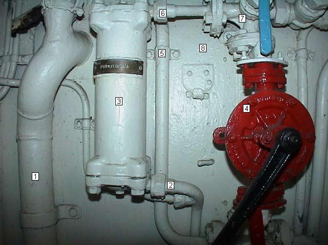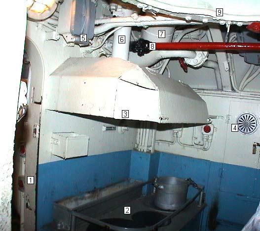 Mamparo estanco entre sala de motores diesel y cocina. |