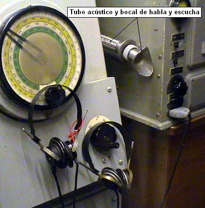 Los tubos acústicos consisten en unos tubos para comunicarse entre dos o más compartimentos en cada una de cuyas terminales hay una especie de cono para acercar boca u oído, bien para hablar o bien para escuchar las órdenes o mensajes trasmitidos. En algunas líneas ese bocal es de latón o acero inoxidable y va unido a la línea principal por medio de un tubo flexible de éste mismo material o en otros casos de goma que permite acercar el bocal bien al oído para escuchar o bien a la boca para hablar. |