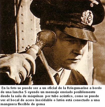 Por lo general los buques de superficie tenían comunicaciones por tubo acústico entre los puntos neurálgicos de cualquier buque (puente y máquinas, puente y sala del servo, puente y torres de artillería, puente y sala de comunicaciones,...etc. En los tipo VII el sistema estaba formado por una red de tubos que permitían la comunicación de diferentes compartimentos entre sí lo que permitía a los oficiales tener un control alternativo y eficaz sobre los lugares más importantes del sumergible, desde el puente la torre y la central se podían enviar por este sistema las órdenes precisas a las salas de torpedos y a los maquinistas que debían controlar los motores eléctricos, también si era necesario se podía, desde la torre, consultar o pasar aviso sobre cualquier incidencia o contingencia al comandante, las salas de radio y escucha también disponían de tubo acústico que comunicaba con la torre o la central. Para los compartimentos de capital importancia se disponía un sistema de avisos paralelo con un tubo más fino que en sus extremos tenía un silbato. |